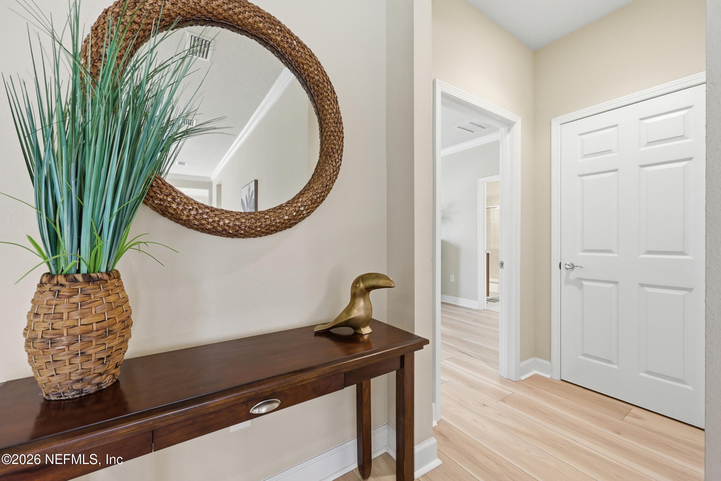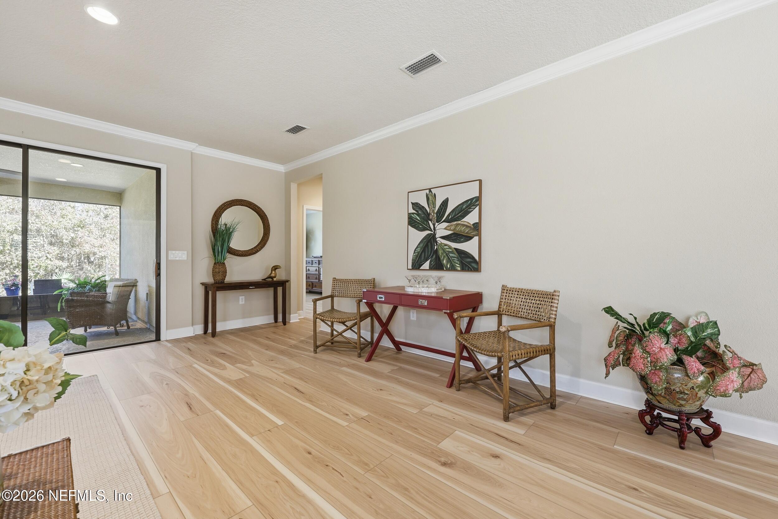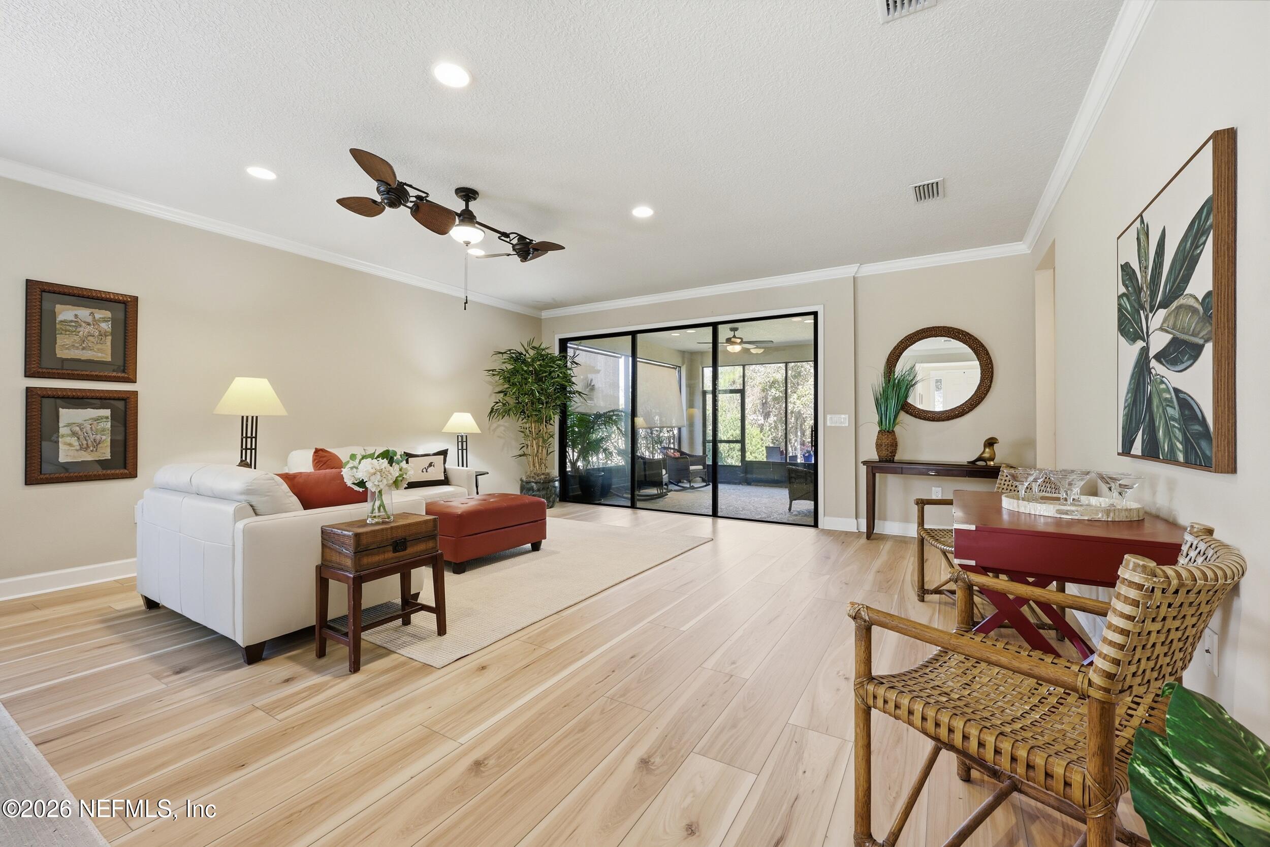 PRICED TO SELL - NEW BEAUTIFUL FLOORING just installed. 2 bedroom with flex room/office, 2 bath home on a DOUBLE PRESEVE Lot with a NEW ROOF and NEW energy efficient (low E) window! HOME WARRANTY included up to $700. Come visit 780 Wandering Woods in beautiful Ponte Vedra, FL, where charming meets modern comfort. This inviting home, provides a generous 1,922 sq. ft. and provides a serene and picturesque preserve setting in both the front and rear. Wandering Woods is a lovely tree-lined road with lots of preserve for a pleasant walk. Enjoy your morning coffee or breakfast overlooking the front preserve. This Chef's Delight kitchen features expansive granite countertops and tons of cabinets with an inviting eat-in area. You'll appreciate the beautiful NEW LPV FLOORING (light & bright) along with PLANTATION SHUTTERS and CROWN MOLDING. Outside pavered patio for evening grilling. INCREDIBLE PRICE AT $262 SF! This home boasts an abundance of large windows that fill the space with natural light. The Open living & dining rooms are designed to flow to a covered, screened lanai leading to a paver patio. Enjoy the rear preserve while watching your pets romp around the fenced-in yard. The flex room is perfect for those seeking an office or a den retreat. The house has been freshly painted. This home also has an Extended Garage giving you more space for tools, bikes and extra storage. Enjoy all the amenities that not only Del Webb offers here but also all the Nocatee pools and their amenities. Great for grandchildren and guests. Del Webb has an amazing resort pool with lap lanes, beach entry perfect for floating. The Anastasia Clubhouse is amazing with a Ballroom & Stage, Craft Room, Billiard room, Cafe, Card/Game Rooms, Exercise equipment Room, Exercise Class Room, Sauna, Steam, Hot tub, Massage Room and all the 60 Classes they have to offer! If this is not enough...try the Nocatee amenities with your guests too. Enjoy your next home in our beautiful 55+ community with fabulous amenities in Riverwood and throughout Nocatee.
